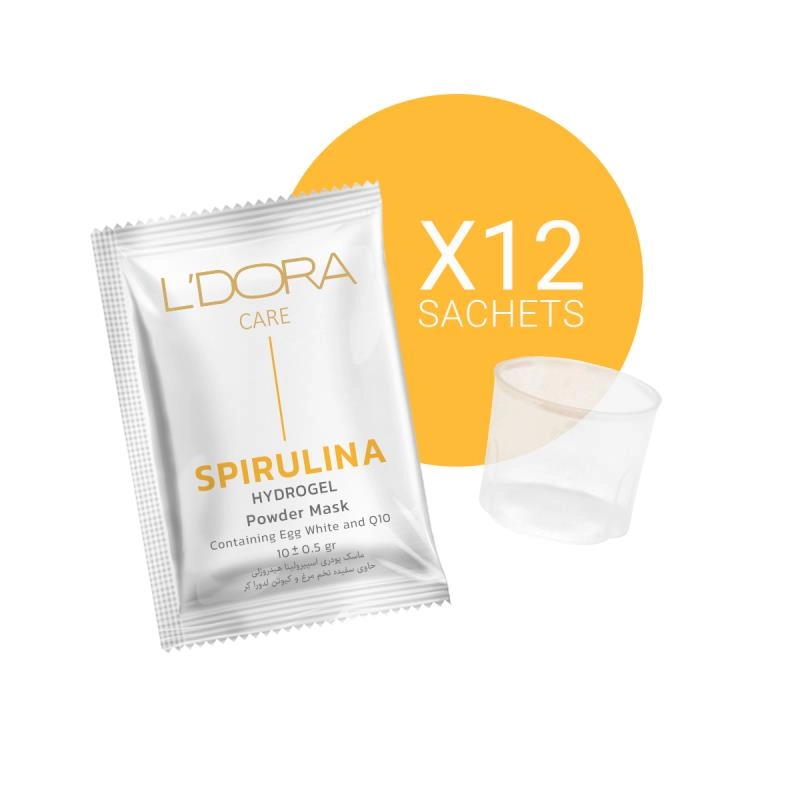 ماسک پودری اسپیرولینا هیدروژلی حاوی سفیده تخم مرغ و کیوتن لدورا هربال 12 عددی